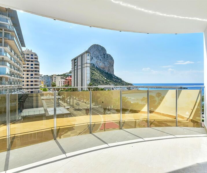This modern new building complex offers apartments with beautiful panoramic views and with south facing terraces overlooking the sea, the port and the rock Ifach of Calpe! This property has a bright open plan living room with large windows opening onto the covered terrace, an open fully fitted kitchen, 3 bedrooms, 3 bathrooms and a storeroom/laundry room. The building has 11 apartments spread over 9 floors, a communal swimming pool with landscaped gardens and terraces for sunbathing.