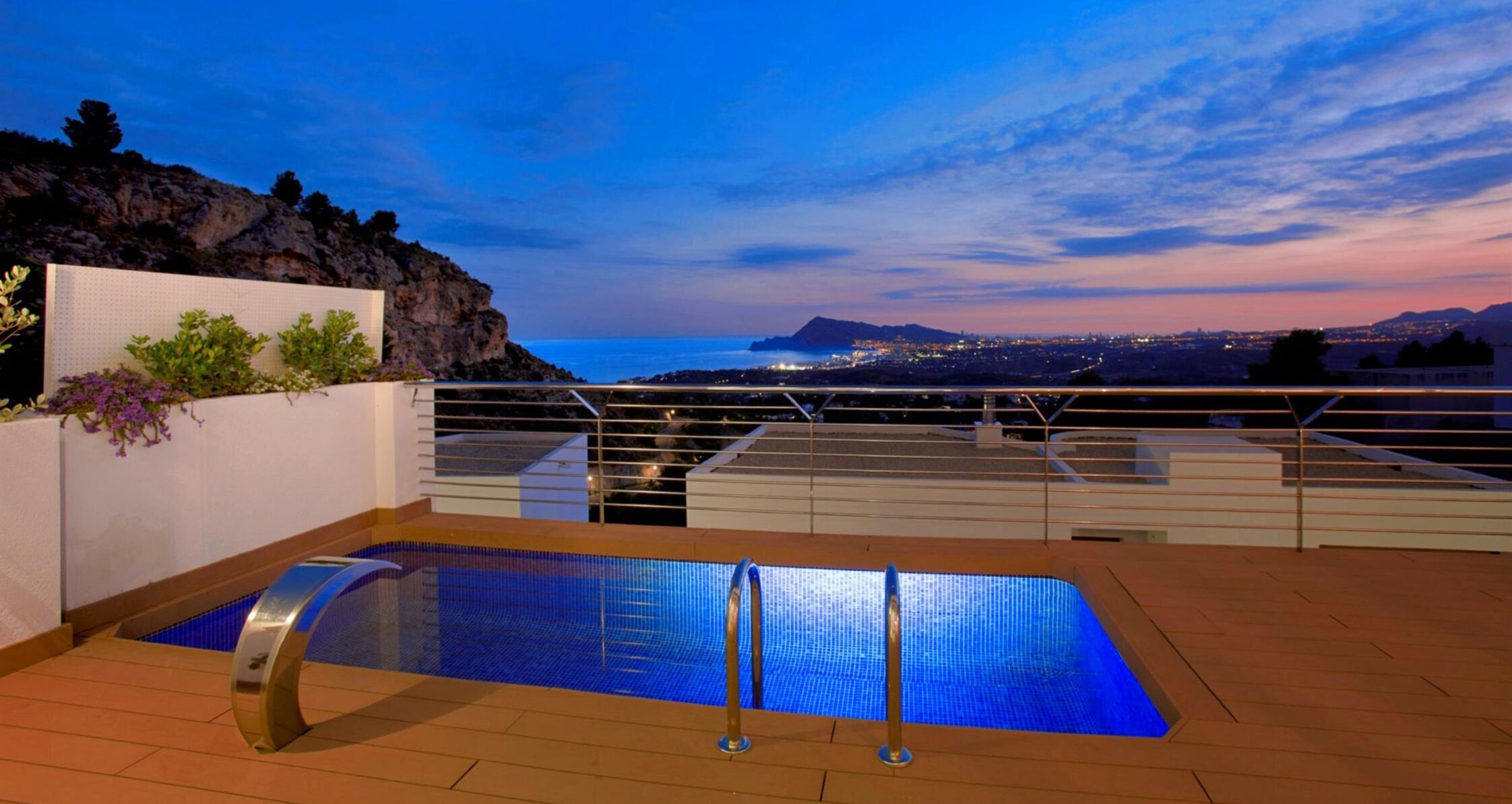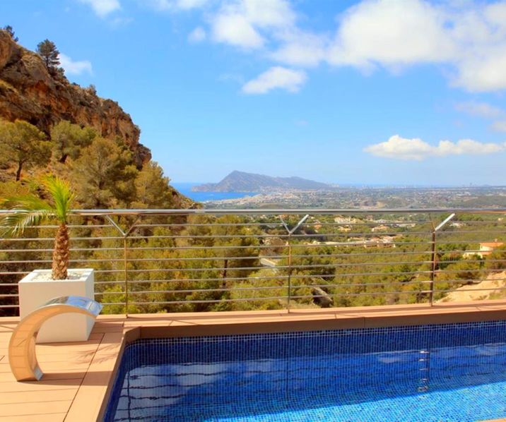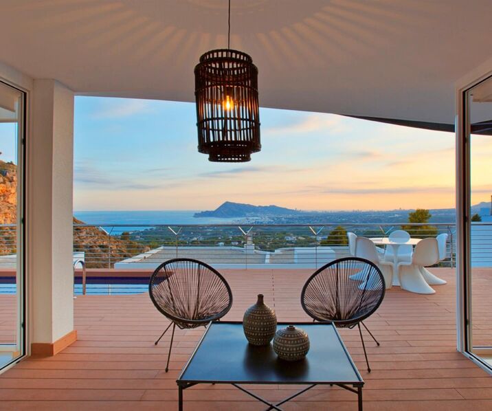 These stylish villas, in Avantgarde architecture, are built in a closed residence amidst the beautiful nature and with panoramic sea views over the Altea coastline. These villas enjoy a quiet location in nature and close to the Don Cayo Golf courses but on the other hand all facilities, the city of Altea and the authentic charming Old Altea are close by. Each villa is detached and all surrounding villas have their own exclusive design.