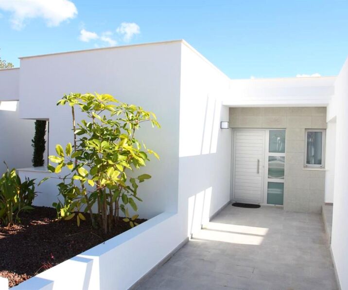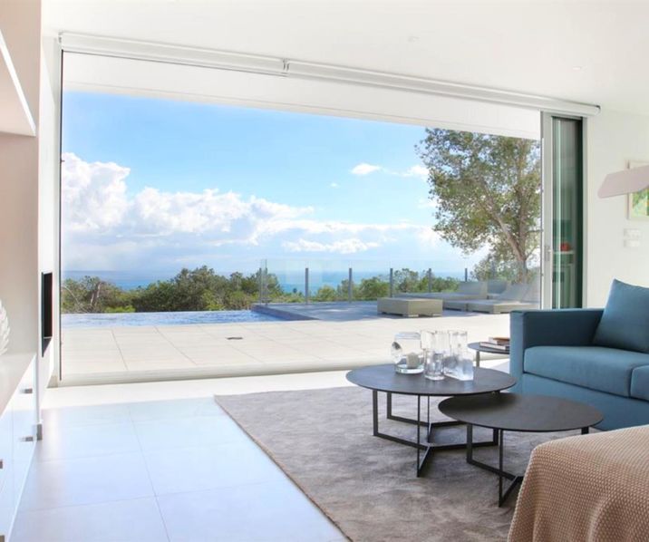 This class full new build villa has on the ground floor an entrance hall, a spacious living room with large windows, an open and fully fitted kitchen with immediate access to the terrace and the swimming pool with panoramic sea and mountain views. The large windows in the living room can be fully opened allowing you to fully enjoy the Mediterranean climate! The terraces around the infinity pool provide ample space for a lounge seating area and sunbathing area! Through the night hall there is access to the 2 bedrooms with fitted wardrobes, a separate bathroom, a master bedroom with ensuite bathroom and a walk-in dressing room. The villa has a ground floor space of no less than 76.5 m2, with a layout that makes it possible to easily integrate a separate guest house. This guest house has a living room, an open plan kitchen, a bedroom and a separate bathroom. The entire house is equipped with electric shutters, Daikin brand H/C air conditioning, ROCA brand sanitary facilities, underfloor heating etc.