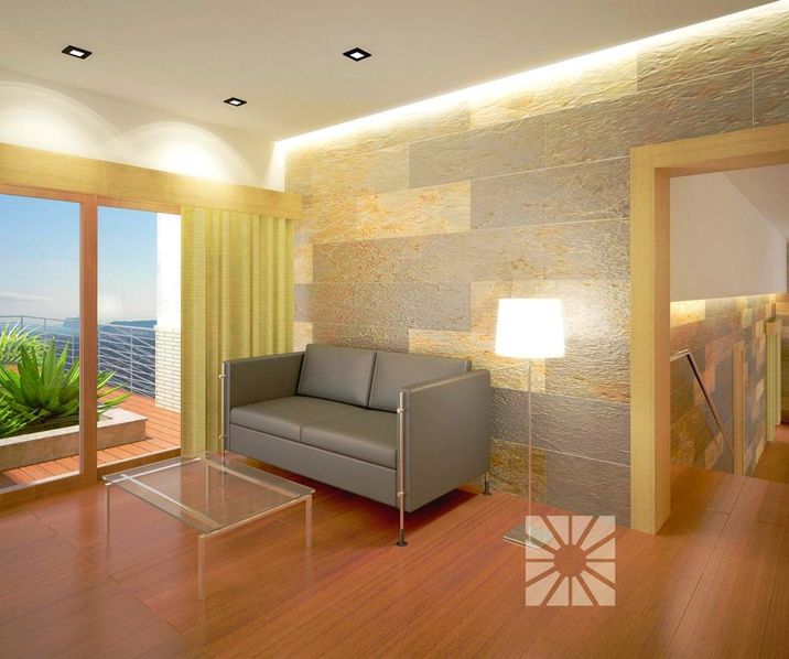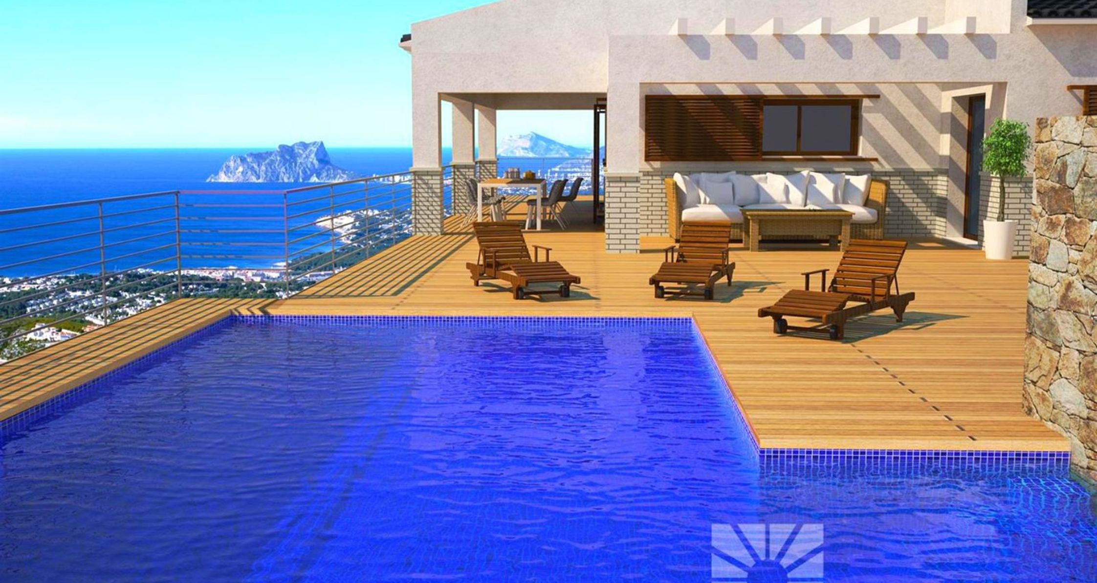 The terrace is an essential part of the house and is covered with a wooden Visendum floor that surrounds the entire villa. Next to the kitchen and dining area you will find the deep blue pool, strategically placed to take full advantage of the beautiful sea views. The barbecue and dining area complete the exterior. The right wing is dedicated to the sleeping quarters, an area divided into two levels by stairs. On the first level, the spacious lounge attracts attention. The decoration follows the same lines as the main lounge and from here one can access the master bedroom. The master bedroom consists of three spacious rooms: the bedroom with access to the terrace, the bathroom and the dressing room. The second level consists of three more bedrooms, each with ensuite bathroom, two of which give direct access to the terrace with its magnificent sea view. A very personal home, decorated with natural stone and parquet that gives it its beauty, elegance and warmth. Patio's, large windows, Mediterranean plants incorporated in the terrace, with stone demarcated landscaped gardens, a fusion of styles that make this house a unique jewel.