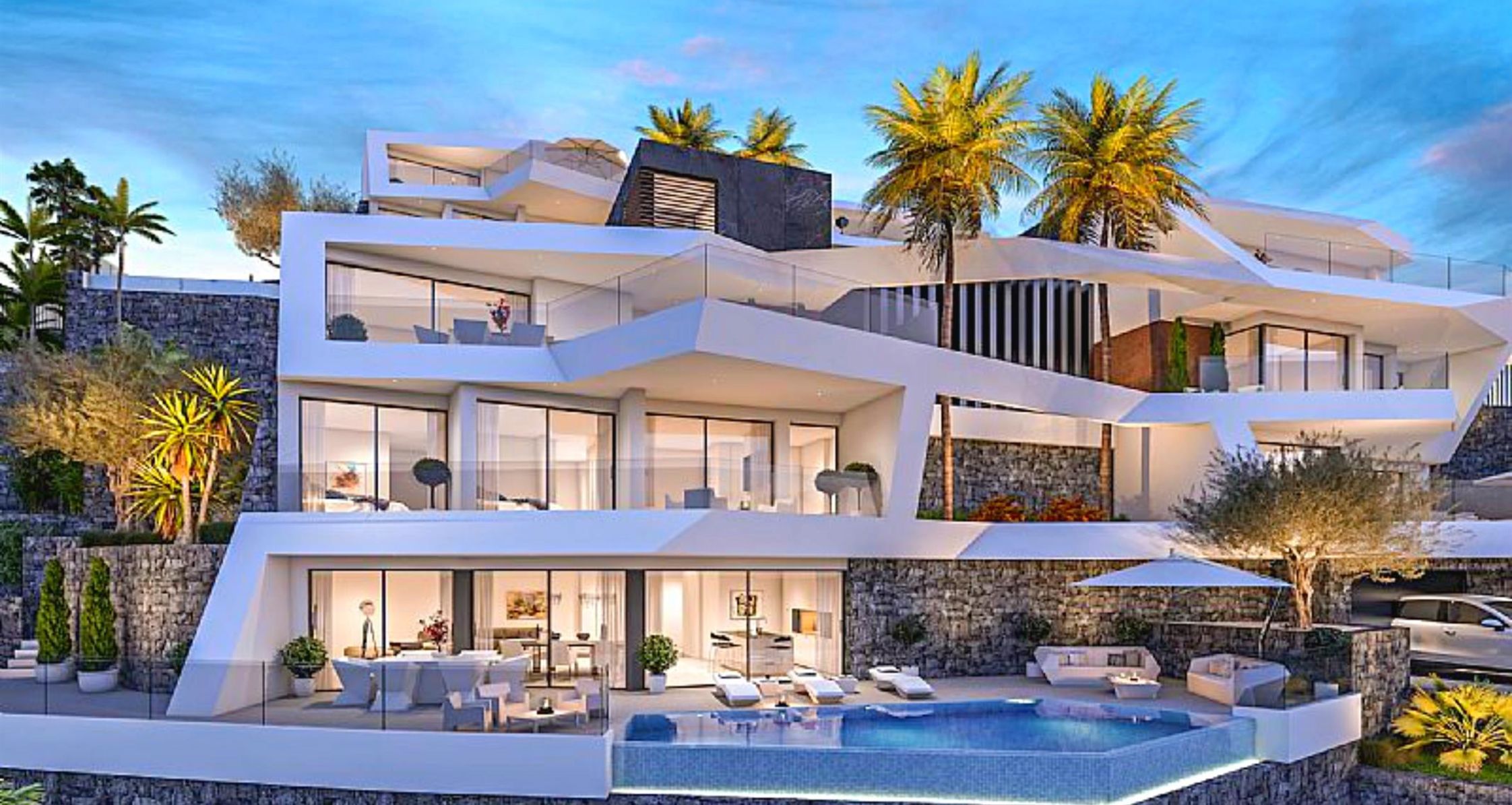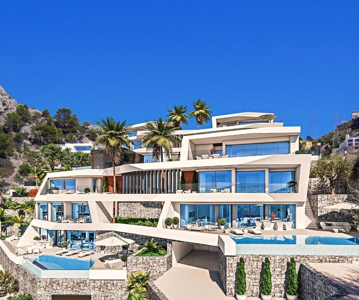 Indrukwekkende nieuwbouw villa in exclusieve compound met adembenemende zee uitzichten en op wandelafstand van het strand te Altea!