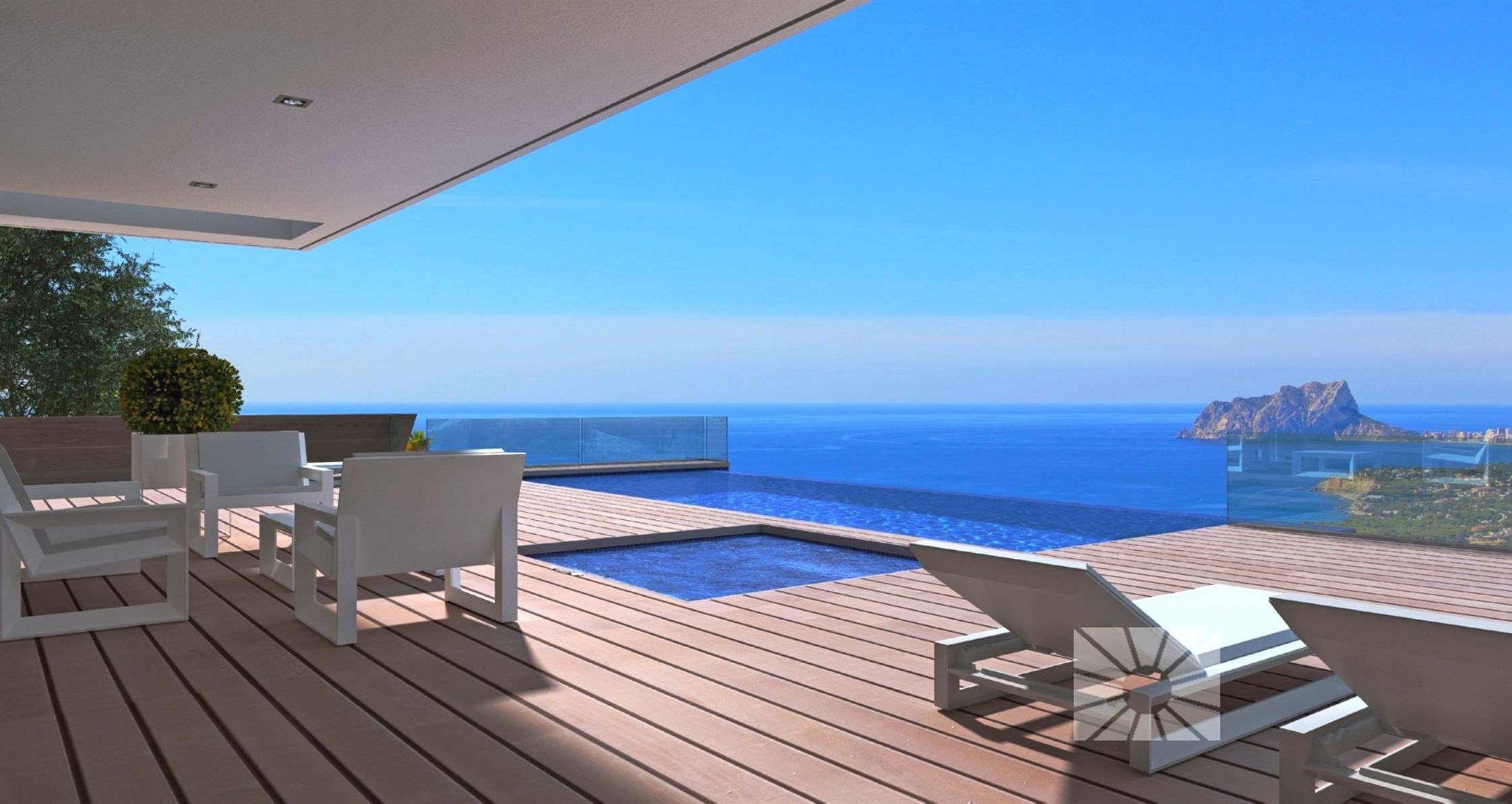 De derde etage is een lumineuze ruimte met aparte toegang en beschikt over een terras en een pergola, die u de mogelijkheid biedt om de woning uit te breiden met een fitnessruimte, een bioscoop, een extra slaapkamer etc. Deze luxe villa met uniek zwembad en waar de zee en lichtinval troef zijn zal u ongetwijfeld maximale ontspanning bieden. De volledige woning is voorzien van elektrische rolluiken, airconditioning H/C van het merk Daikin, sanitaire voorzieningen van het merk ROCA, vloerverwarming etc.